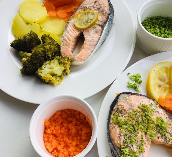 Los pescados cocinados al vapor con el Varoma quedan en su punto, con una jugosidad especial, conservando y potenciando el sabor y sin olores como sucede con el salmón o la sardina, al vapor quedan deliciosos. Los tiempos de cocinado dependerá del tamaño de la pieza que coloques, de la frescura… es importante que vayas comprobando el punto para que no se pasen y te queden secos.