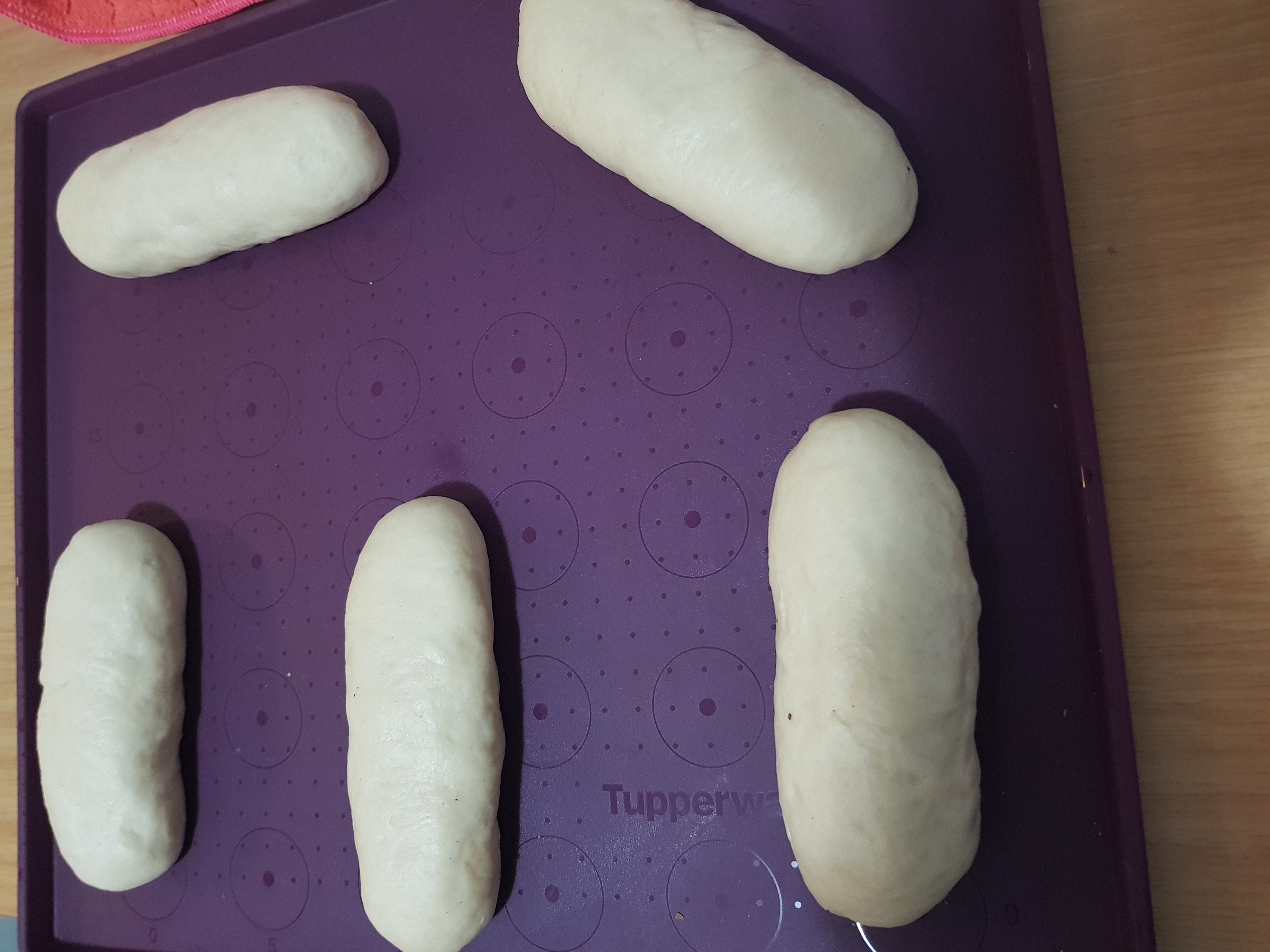 Coloque los bollos en la bandeja preparada dejando 2 cm entre unos y otros. Pincele con agua y cubra con film transparente hasta que doblen su volumen.