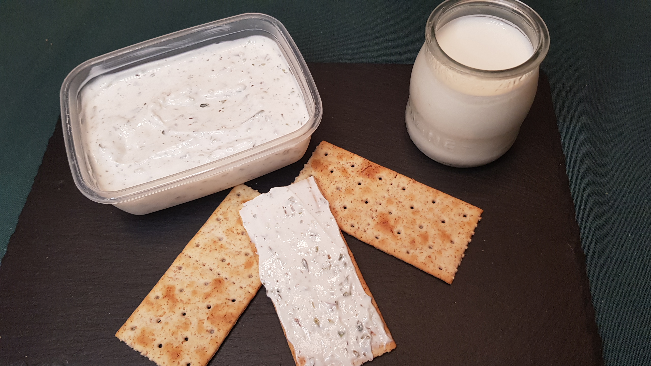 . Es muy sencillo de hacer, hemos llegado al paso del yogur griego pues si en lugar de dejarlo media hora lo dejamos durante varias horas que suelte bien todo el suero y este el yogur muy espeso, solo es añadirle un poquito de sal y si queréis hacerlo a las finas hierbas por ejemplo añadirle lo que os guste, yo le puse sal, óregano, hierbas provenzales y tomillo, le vais poniendo un poquito movéis bien y vais probando hasta que esté de vuestro gusto.