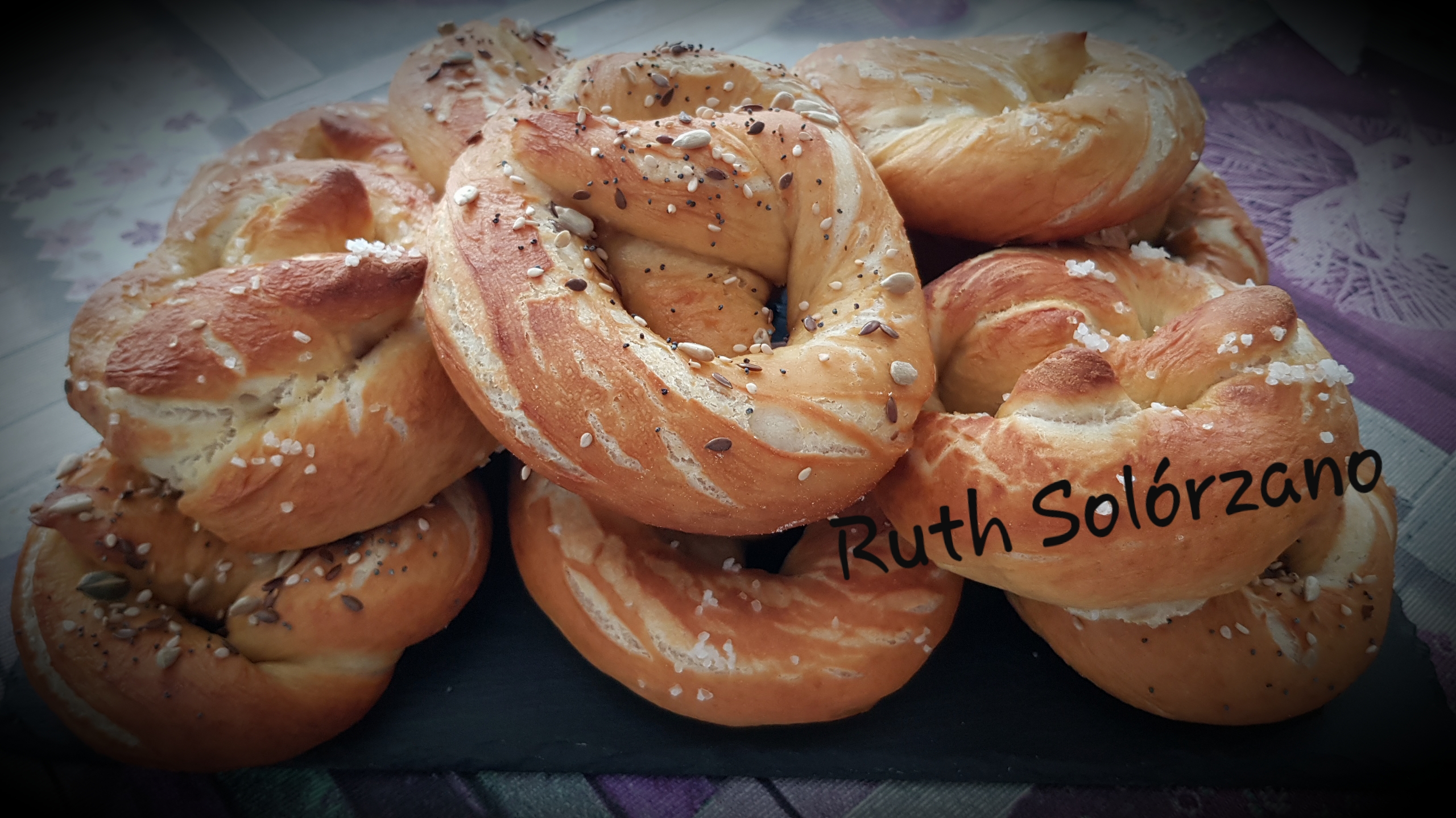 Porcierto los bretzel llevan por encima sal o sésamo, pero no tenía en casa en ese momento y le puse mezcla de semillas