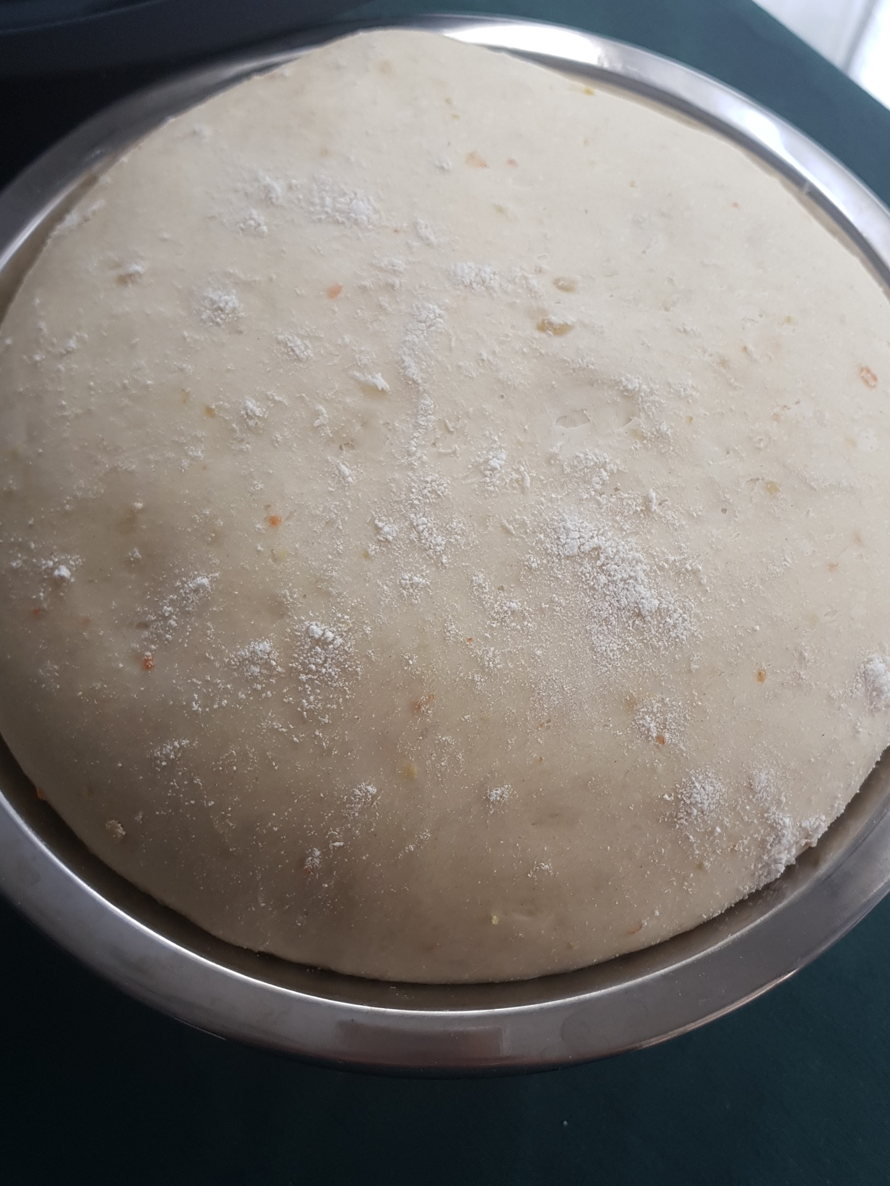 4.Sacamos la masa y la ponemos en un bol enharinado y la dejamos hasta que doble su volumen, unas 2 horas.