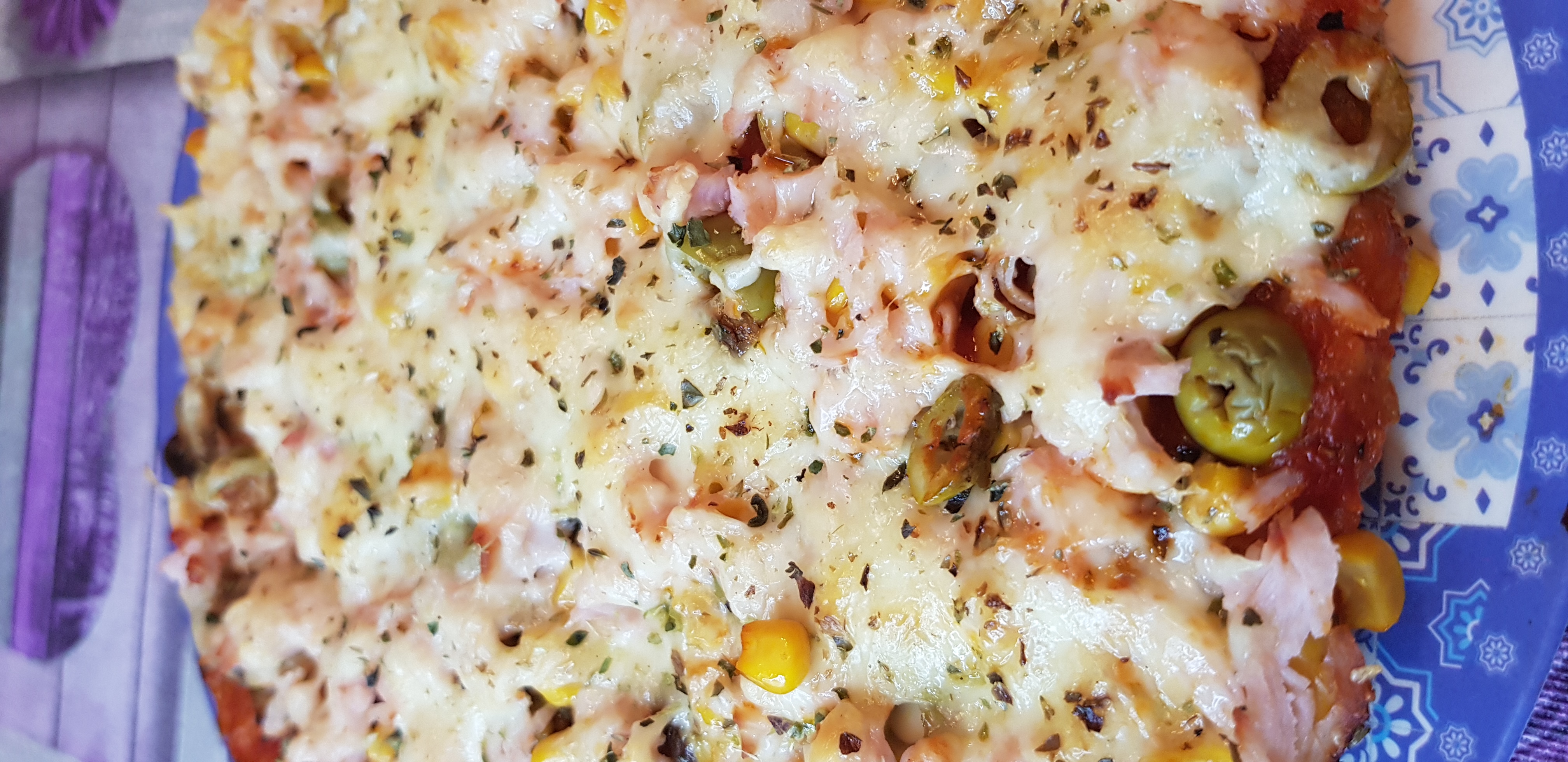 Y ESTE FUE EL RESULTADO, NO ES COMO UNA MASA DE PIZZA DE LAS QUE COMEMOS NORMALMENTE, TIENE OTRA TEXTURA PERO DE SABOR ESTABA MUY RICA.